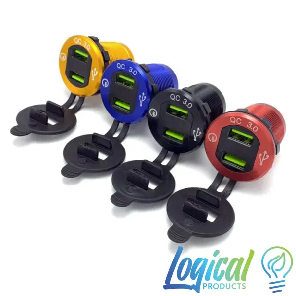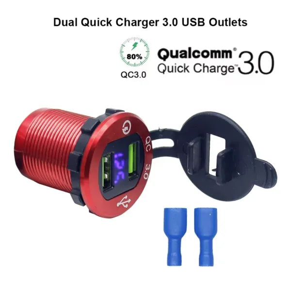12V / 24V Fast-Charging Dual USB Power Socket features a durable anodised aluminium body and delivers rapid charging via QC 3.0 technology. Designed for vehicles and off-grid setups, it provides reliable power for phones, tablets, and accessories while the built-in digital voltmeter gives real-time system voltage at a glance.