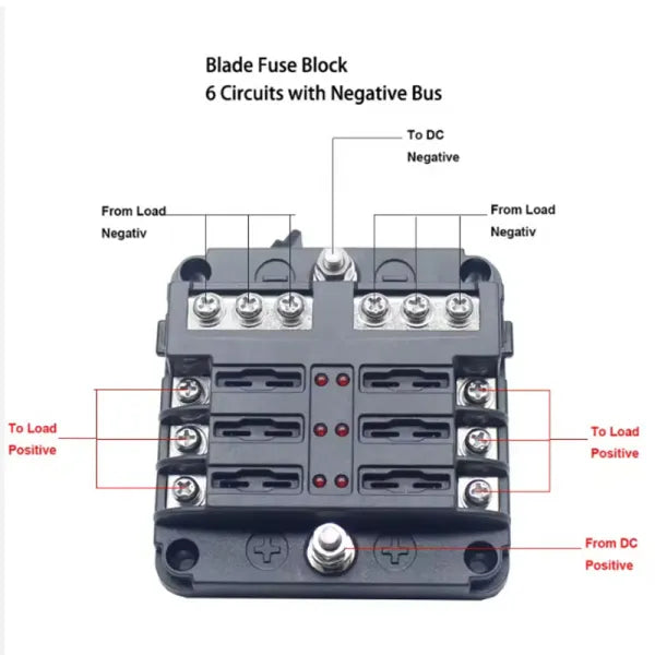 6-Way Fuse Block with Bus Bar, a versatile solution for efficient power distribution.