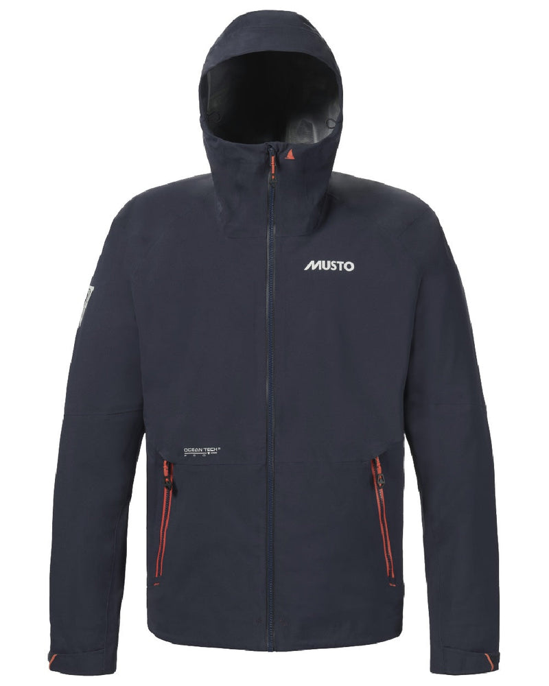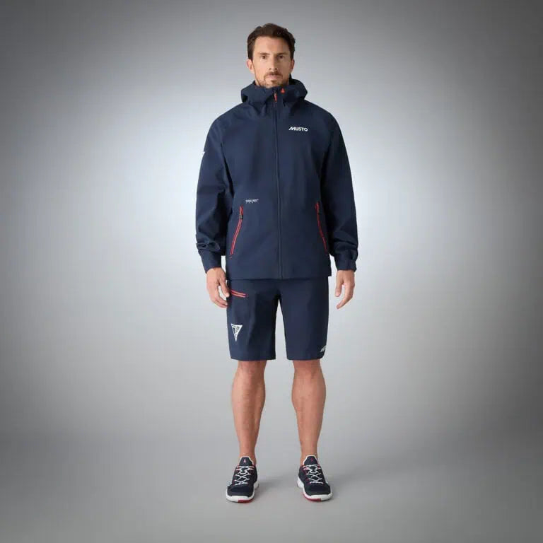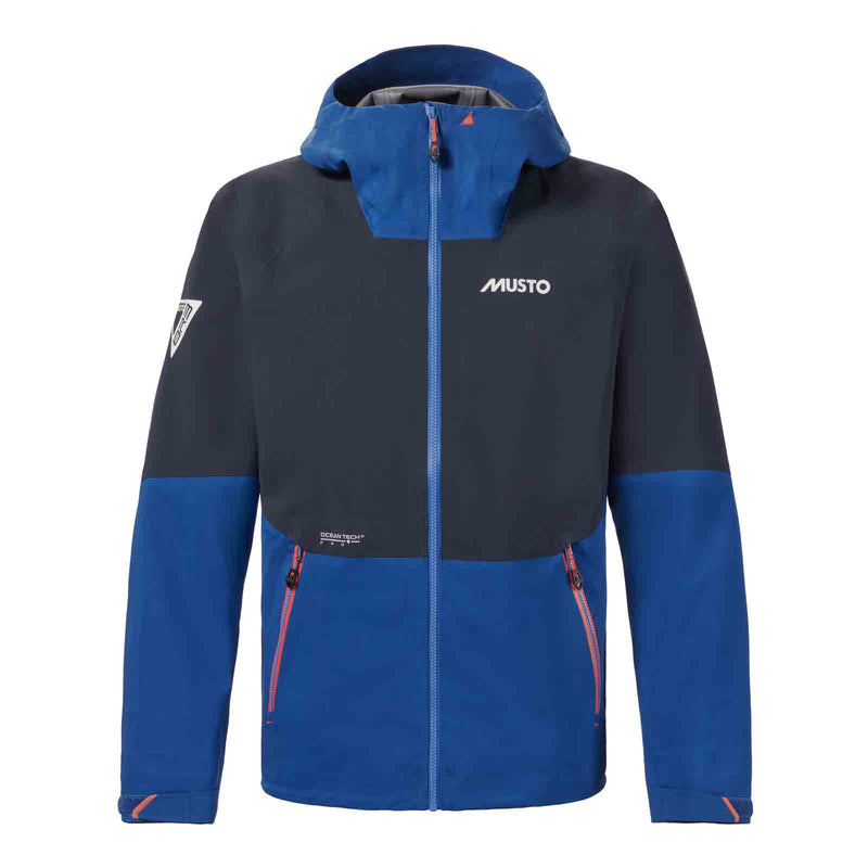 This Musto Men's BR3 Sport Sailing Jacket is made with Musto's fully waterproof Ocean Tech Pro™ fabric and engineered for high-tech performance during inshore races. The race-fit hood features a bonded peak that won't obstruct your vision and a 2-way adjustment for a custom fit that protects you from the elements. The 4-way stretch of the fabric alongside articulated sleeves enhances freedom of movement, and the adjustable cuffs and hem help to prevent water ingress. The zipped, water-resistant pockets benefit from laser-cut drainage. Reflective details improve your visibility to others.