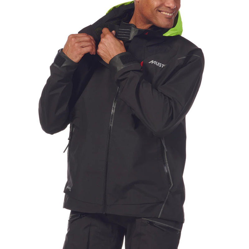 Musto's ideal jacket for shorter duration offshore racing. 3-layer GORE-TEX Pro fabric offers exceptional protection from the elements while the mechanical stretch shoulder panels and underarm gusset and articulated sleeves provide exceptional freedom of movement. The HI-VIZ adjustable and stowable hood with a drainage channel offers additional protection.