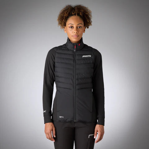 This Musto ladies sailing jacket is built for the serious inshore racer. Both water and wind resistant, this outer layer benefits from Pertex® QuantumComfortemp® fabric technology. Stretch panels create an optimised fit with body mapped insulation to keep you warm and protected against the coldest of spray. Articulated sleeves aid mobility and hand pockets on each side are securely sealable with YKK® zippers. This product contains recycled material. See composition for more details.